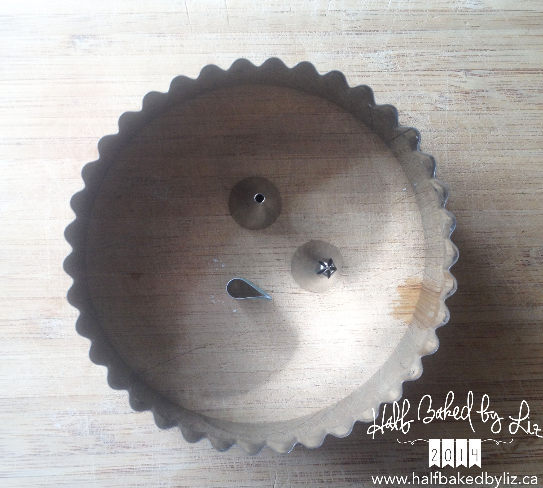 I used four different cutters: a large round cutter (5 inches) with scalloped edges, a tear drop shaped cutter (I couldn’t find one, so my friend Laura made it for me!), and two piping tips – a small circle and a star tip.