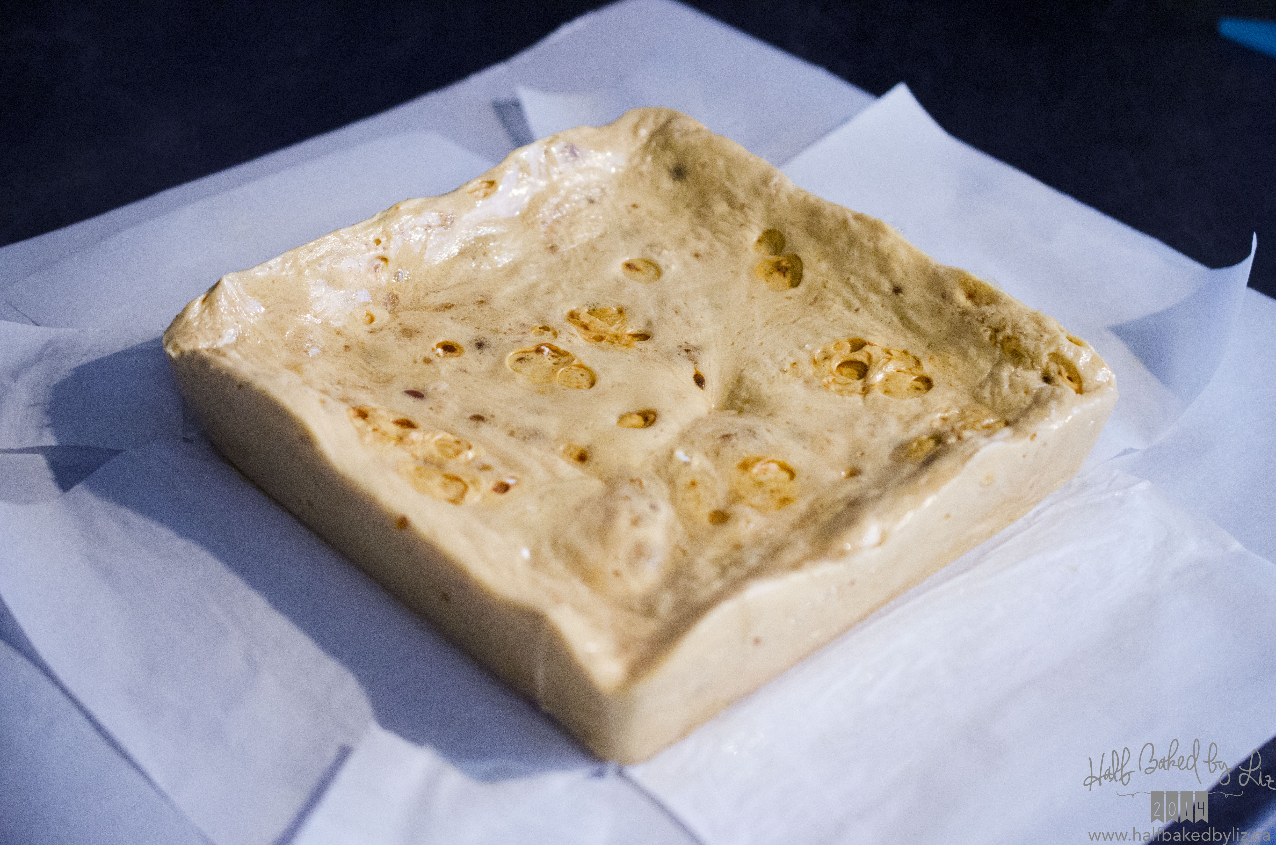 Sponge toffee is one of those things that doesn’t seem like it should be possible to make at home. But it’s actually really easy! I made some a while ago using this recipe from Chuck Hughes / The Food Network :